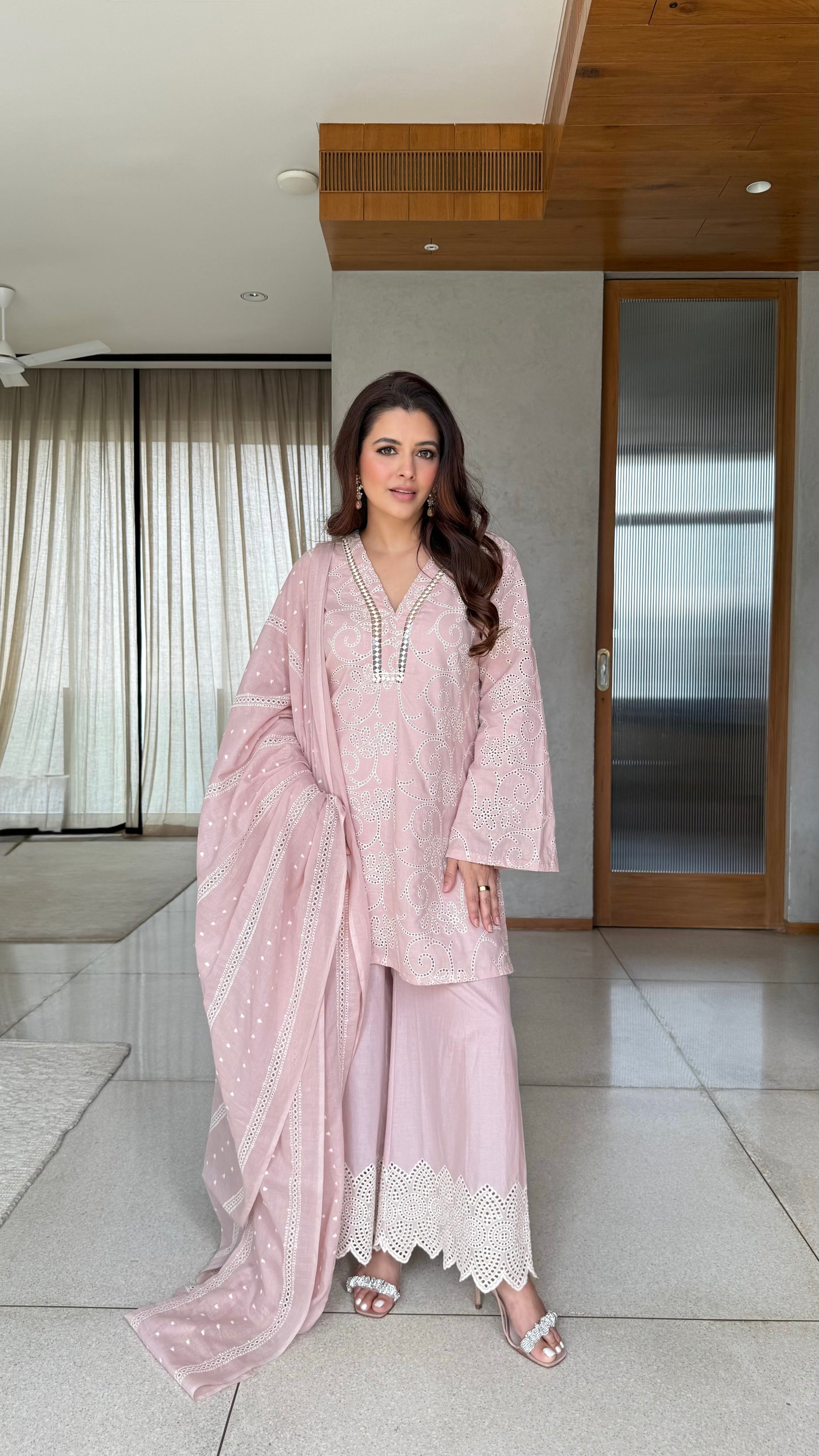 Yellow Cutwork Embroidery Floral Coord Set
