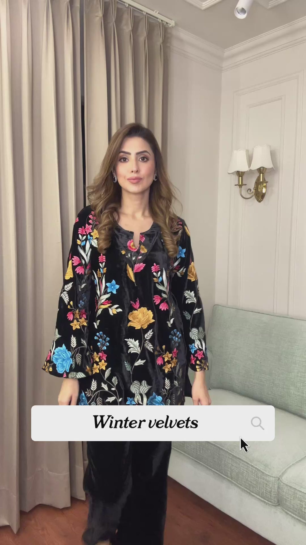 Black Floral Embroidered Velvet Coord Set